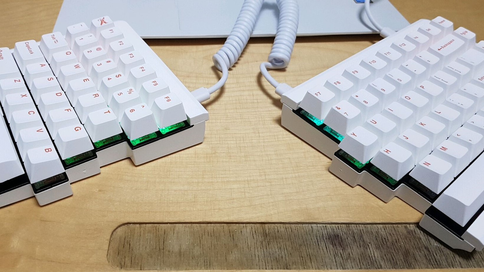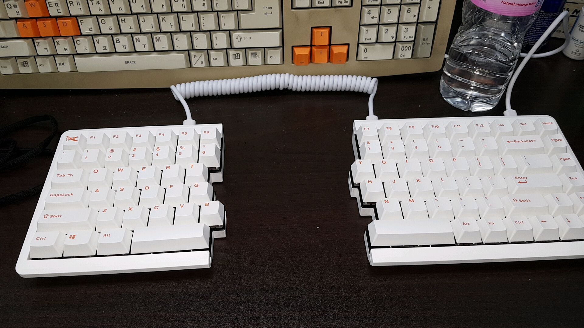 더구나 키네시스 키보드와는 달리 스페이스 바의 경우 왼쪽과 오른쪽으로 나뉘어 평행하게 두 개가 놓이는 독특한 구조를 띱니다. 말 그대로 그냥 일반적인 키보드를 키배열상 가운데로 나누다 보니 스페이스 바마저 양쪽으로 가운데가 갈린 느낌입니다.