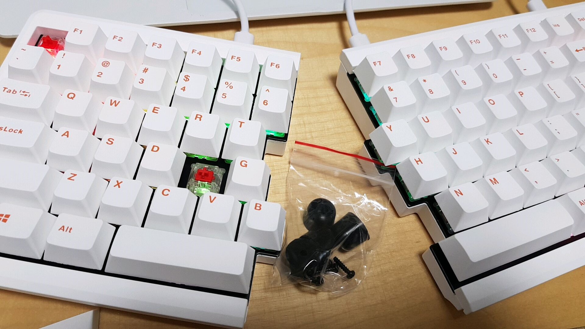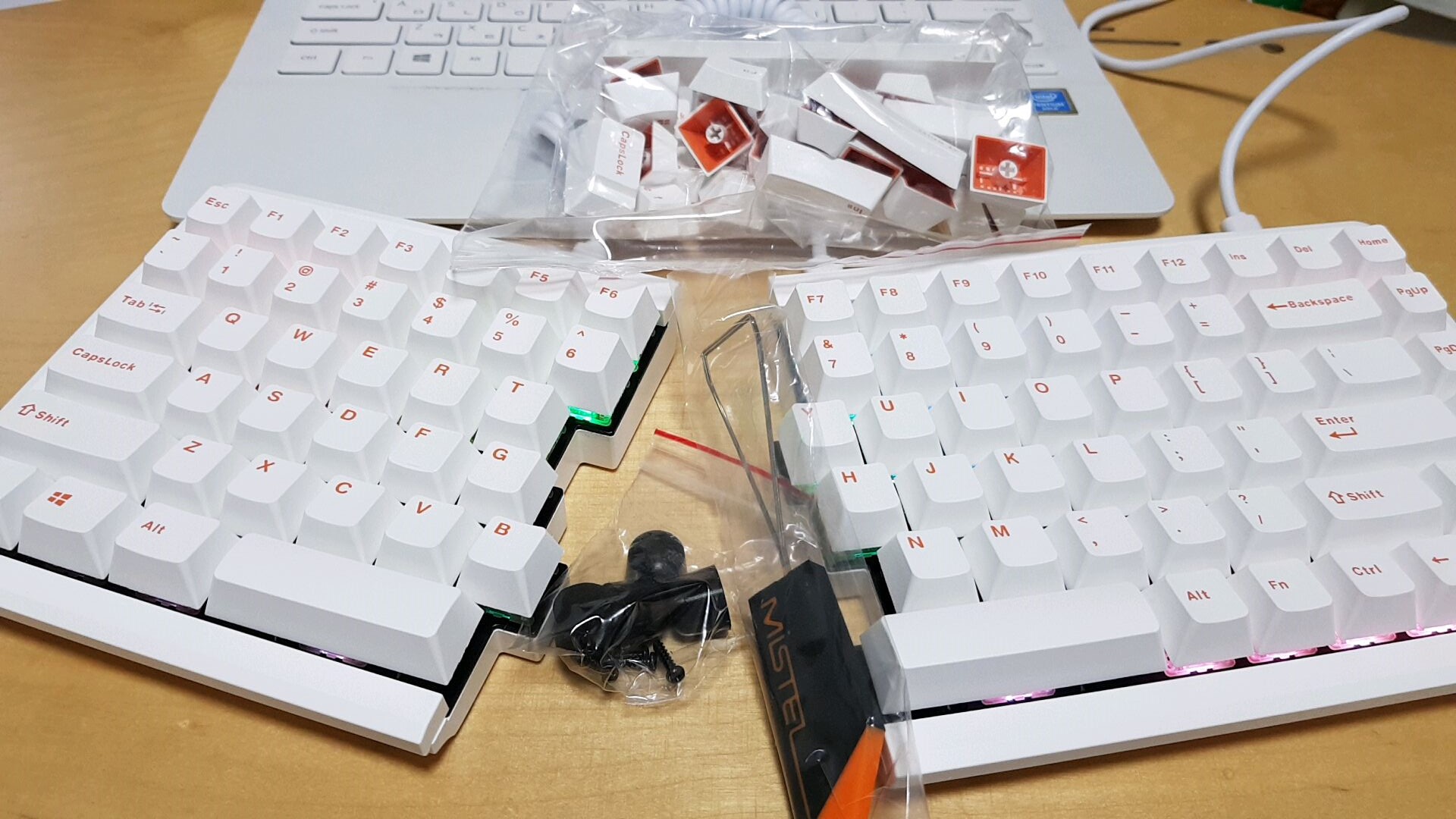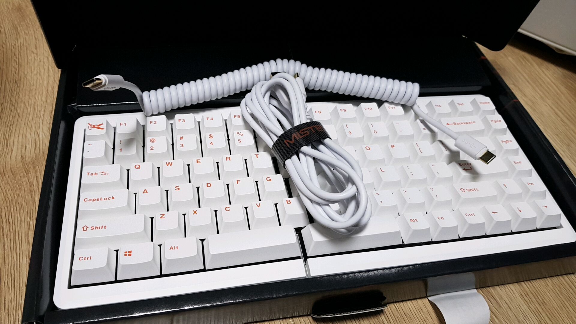 개인적으로 키보드의 LED를 좋아하지는 않는데 기본 제품인 블랙 키보드보다 흰색에 오렌지색 문자열이 인쇄된 흰색 제품이 깔끔해 보여서 흰색 제품으로 구매했습니다. LED도 주로 주간에 사무용으로 사용하는 제 키보드 사용 특성상 크게 거슬리지 않아 그냥저냥 쓸 만합니다.