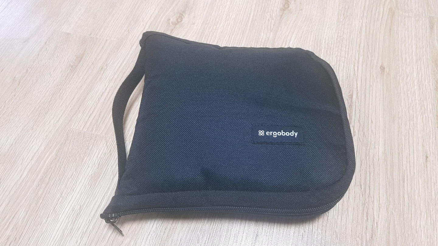 의자에서 사용할 수 있고, 바닥에 양반다리로 앉아서도 사용할 수 있기 때문에, 들고 다니면서 회사에서도 집에서도 사용할 수 있도록 휴대성을 용이하게 하기 위해 지퍼백 형식으로 만들었다.