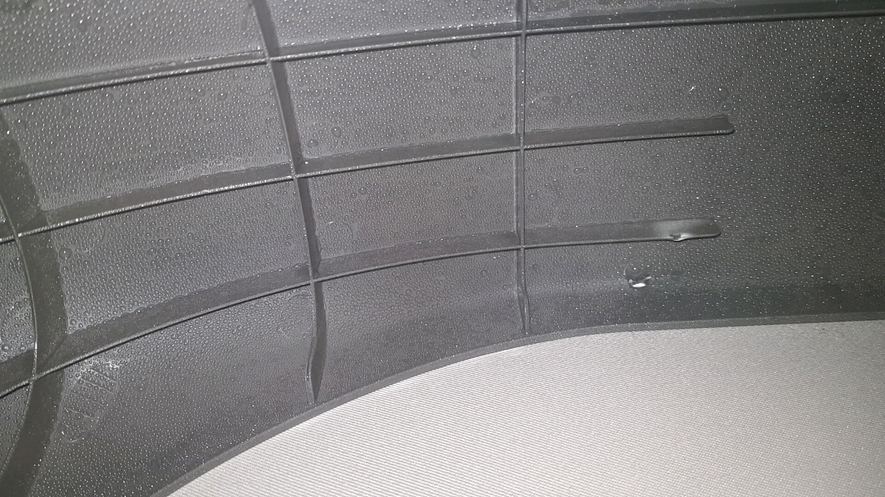 사용 사진을 보시면 아시겠지만, 의류를 꺼내고 새 의류를 넣을 때마다 스팀이 새어 나오는 걸 볼 수 있습니다. 저러한 스팀이 기기 지퍼를 닫고 기기를 작동하는 동안 의류 전체에 스팀 세탁을 하게 되는 것이죠. 그리고 의류를 넣고 꺼내고 넣고 꺼내면서 사용 시간이 늘수록 당연히 저 스팀들이 안에 물이 되어 고이고 본체 안쪽에 물방울로 남을 수밖에 없습니다.