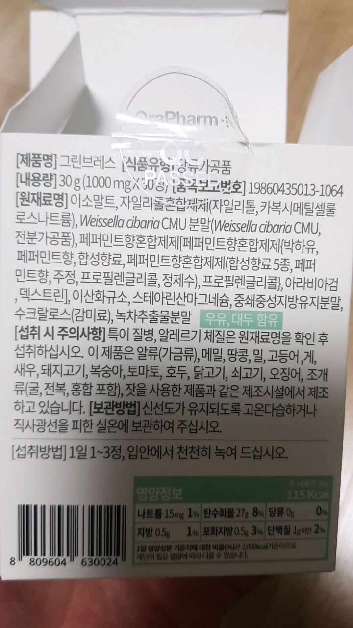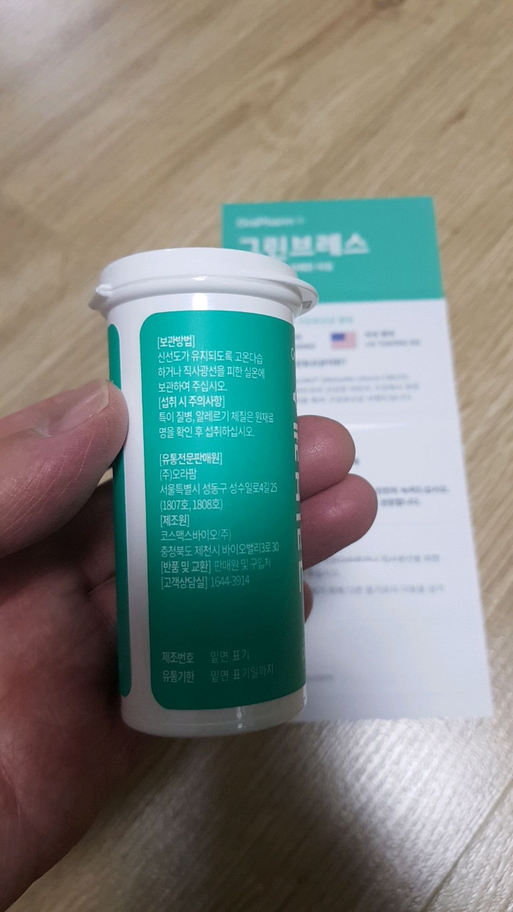 오늘 소개하는 제품은 구강 유산균입니다. 앞서 그린스토어의 박토블리스 구강 유산균 제품을 소개해 드린 적 있는데, 이번에 소개할 제품은 오라팜(OraPharm)의 그린브레스 제품입니다. 이것도 역시 제가 직접 구입해 몇 달간 복용한 제품입니다.