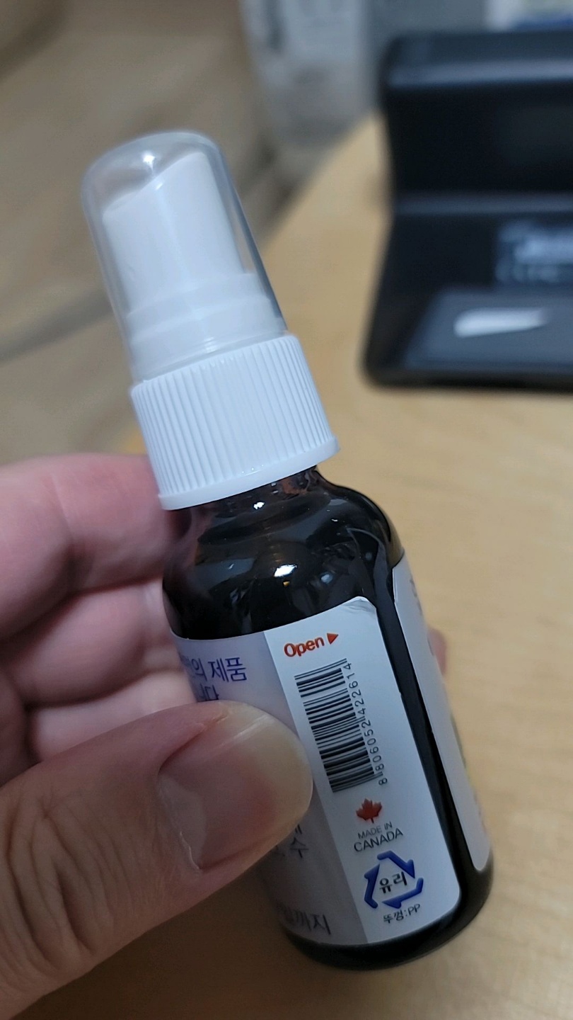 갈색병에 담긴 제품으로 휴대용보다는 저처럼 집에 두고 하루 두 번 사용하기가 알맞은 제품 같습니다. 크기가 크지 않아 휴대가 불가능한 건 아닙니다.