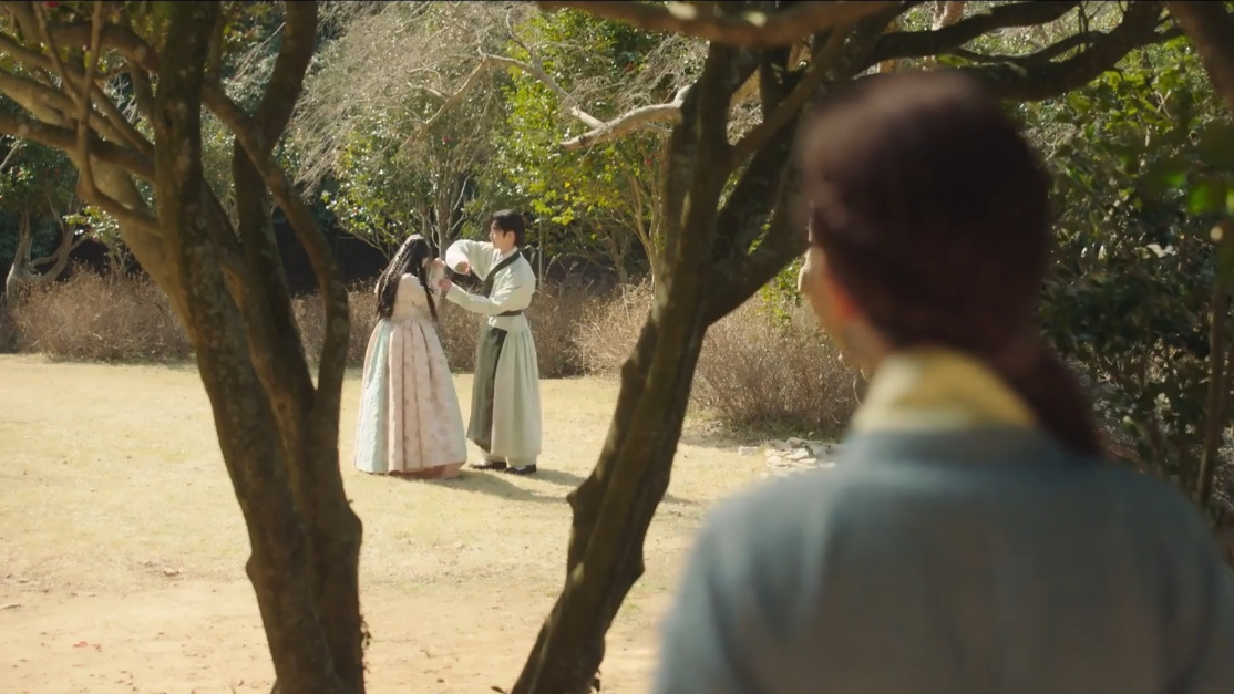 장욱 도련님과 허윤옥 아씨 사이를 질투한 무덕이의 오해를 풀어주려고 장욱 도련님이 무덕이를 안아 주자, 무덕이가 민망함을 감추려 장욱 도련님에게 허윤옥 아씨 같은 사람을 "안아 보던가"라고 말하는 장면입니다.