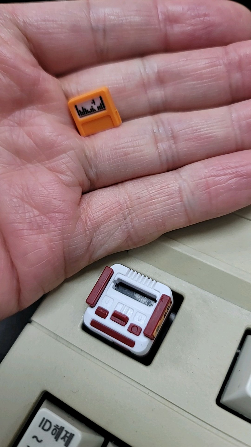 패미컴 키캡은 '알리 익스프레스'에서 구매했습니다. 포장은 개별 포장 안에 패미컴 키캡과 여분의 팩이 두 개 더 담겨서 왔습니다. 팩을 바꿔서 끼우는 것도 나름 콘솔 게임기 디테일을 살려주면서 추가적인 키캡 놀이의 재미를 느끼게 해 줍니다. 체리 스위치여서 십자 연결 부분의 한 개 스위치가 적용되는 어느 부위에나 장착할 수 있습니다. 다만 키캡의 위아래 위치에 따라서 키캡 상단 각도와 높이 등 모양이 변하는 계단식 형상의 스텝 스컬프쳐(Step Sculpture)가 적용된 기계식 키보드다 보니 딱 정해진 키캡 놀이 위치는 없다고 보는 게 더 맞겠습니다.
