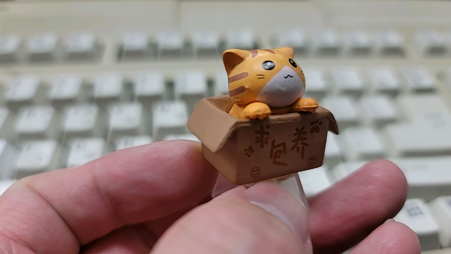 원래 이 제품은 키캡용이 아니라 조그마하고 단순한 인형 소품 같은 것이었던 모양입니다. 찾아보니 인터넷에 고양이가 담긴 박스만 있는 인테리어 소품이 이 키캡보다 훨씬 싼 가격에 판매가 되고 있네요. ㅎ 게다가 이 인테리어 소품을 키캡이 아니라 카메라 플래시를 연결하는 퀵슈 부분에 장착하는 퀵슈 소품으로도 판매하고 있었습니다. 역시 사람은 머리를 잘 써야 돈도 벌고... ㅎ