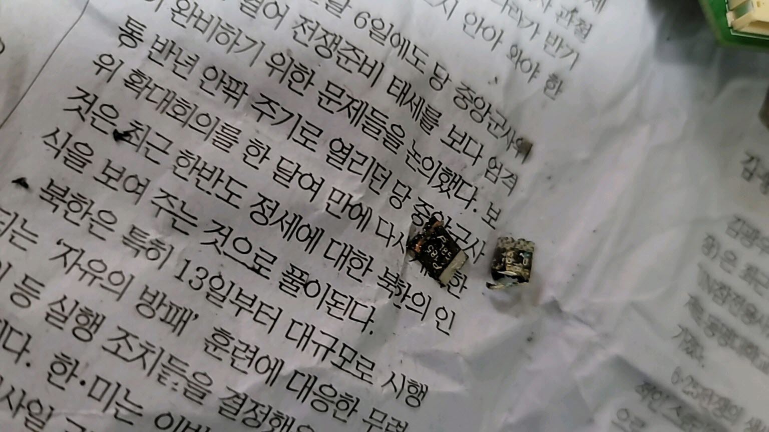 기판에서 기성 퓨즈를 제거하실 때는 기판에 최대한 손상이 가지 않도록 조심하셔야 합니다. 퓨즈가 워낙 잘 붙어 있어 인두로 살살 녹이거나 끌 등을 이용해 제거하는 과정에서 자칫 기판에 손상이 크게 나면 새 퓨즈를 붙일 수도 없는 상황이 발생할 수 있으니 조심하셔야 합니다.