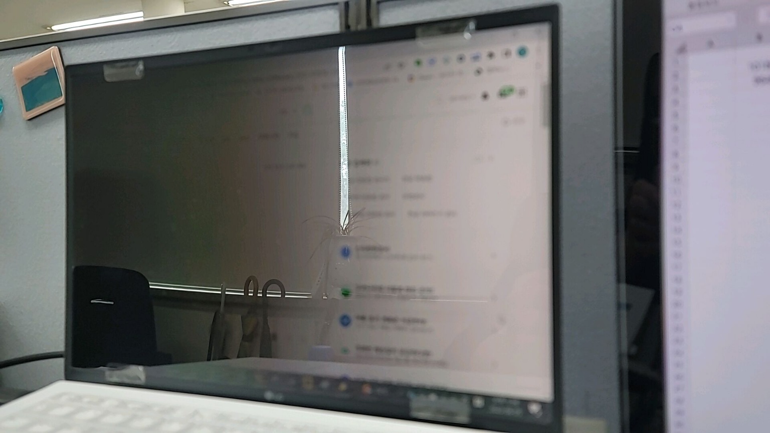 그래도 13인치 사생활호보 필름은 제 사무실 책상에 서브로 놓여 있는 일반 모니터 한쪽에 부착해 사용하고 있습니다. 제가 예전 사생활 보호 필름을 이렇게 재활용하는 것처럼 화면 한쪽만 가려 주는 사생활 보호 필름들도 팔더군요. 가격은 당연히 전체 화면을 커버하는 제품보다 싸고요. 목적은 메신저나 기타 프로그램을 일부만 가려지는 화면에서 사용하도록 한 제품입니다. 참고하시기 바랍니다.